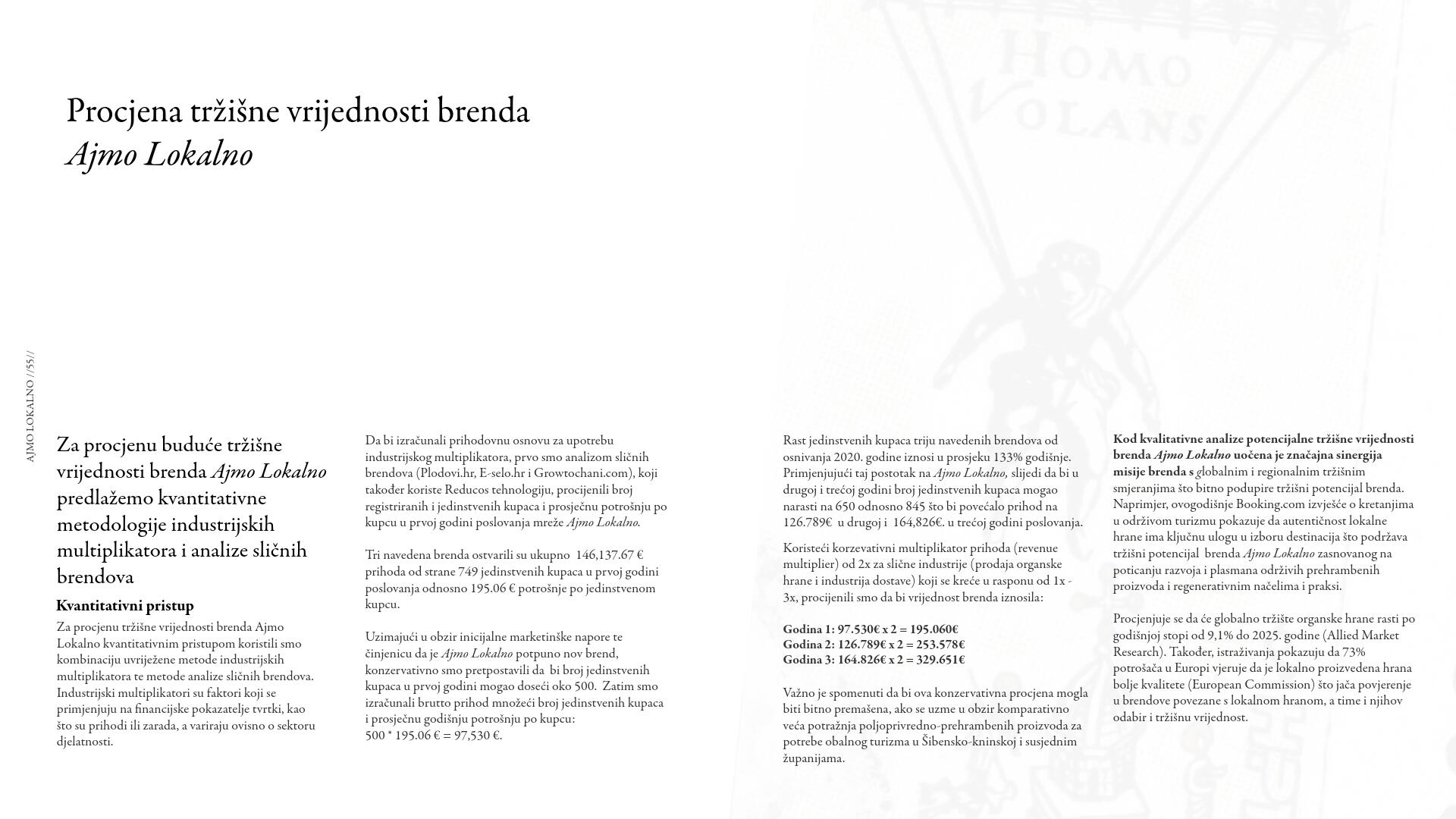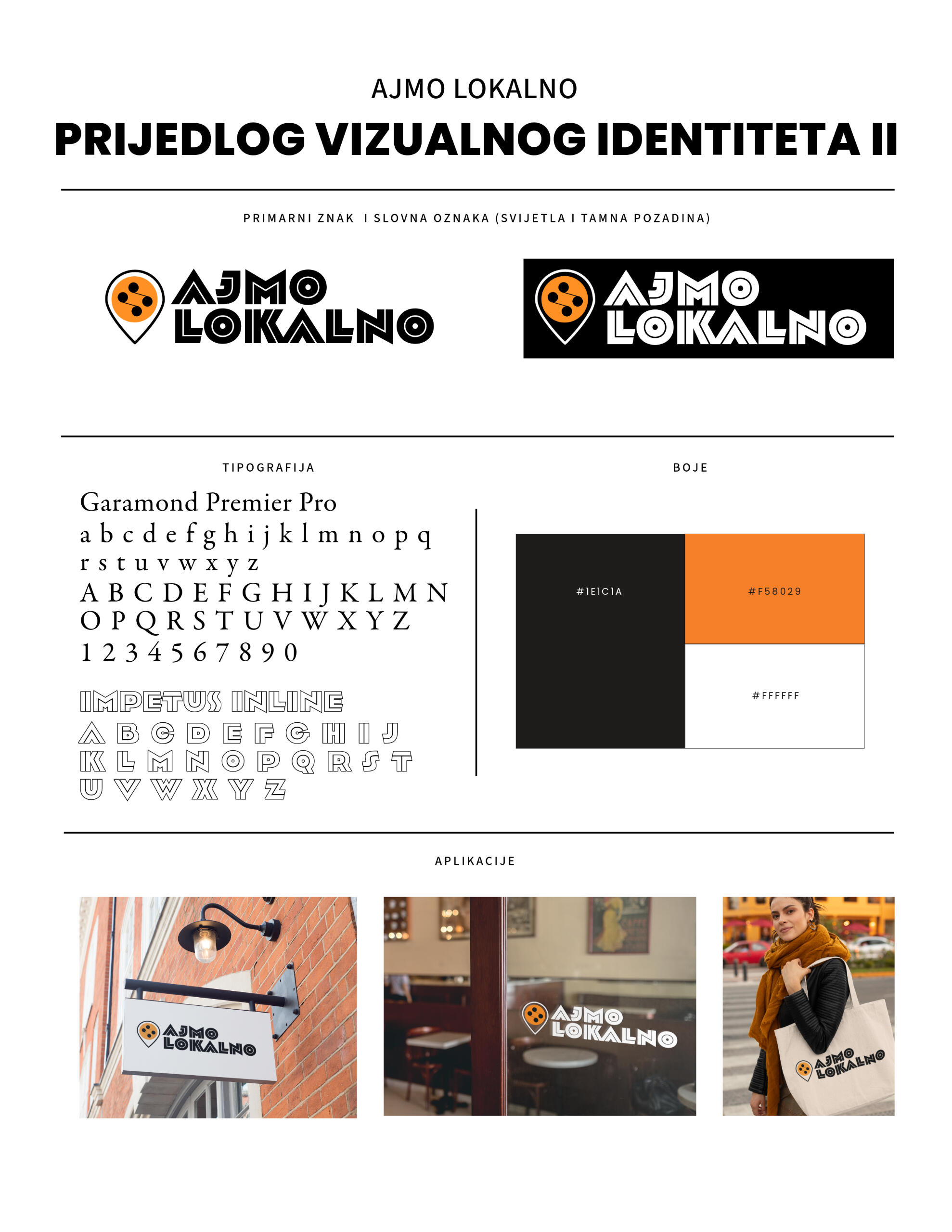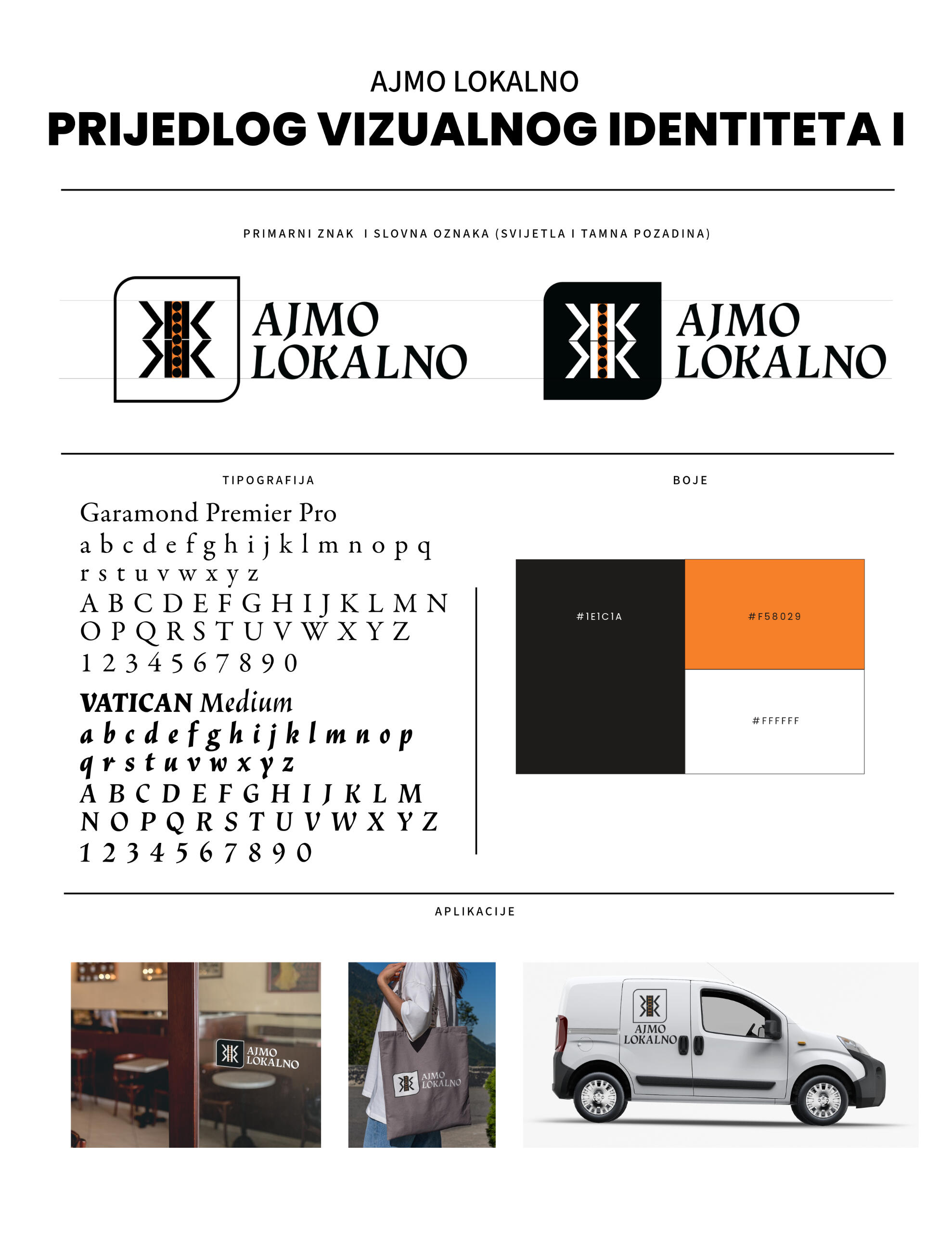 Predlažemo da znak (logo) brenda Ajmo Lokalno u inicijalnom stadiju ima dvostruku funkciju da bi se pojednostavio administrativni proces i smanjilo opterećenje za potencijalne buduće članove mreže.Prvo, znak kao oznaka pripadnosti mreži, čime se ističe povezanost i suradnja unutar zajednice koja promiče lokalnu održivu proizvodnju i proizvode. Drugo, znak kao jamstvo kvalitete proizvoda.Predlažemo da se u inicijalnoj fazi uspostave mreže fokusiramo na kriterije koji su rigorozni, ali istovremeno i dovoljno fleksibilni da omoguće uključivanje što većeg broja proizvođača, posebno manjih i onih koji tek počinju.