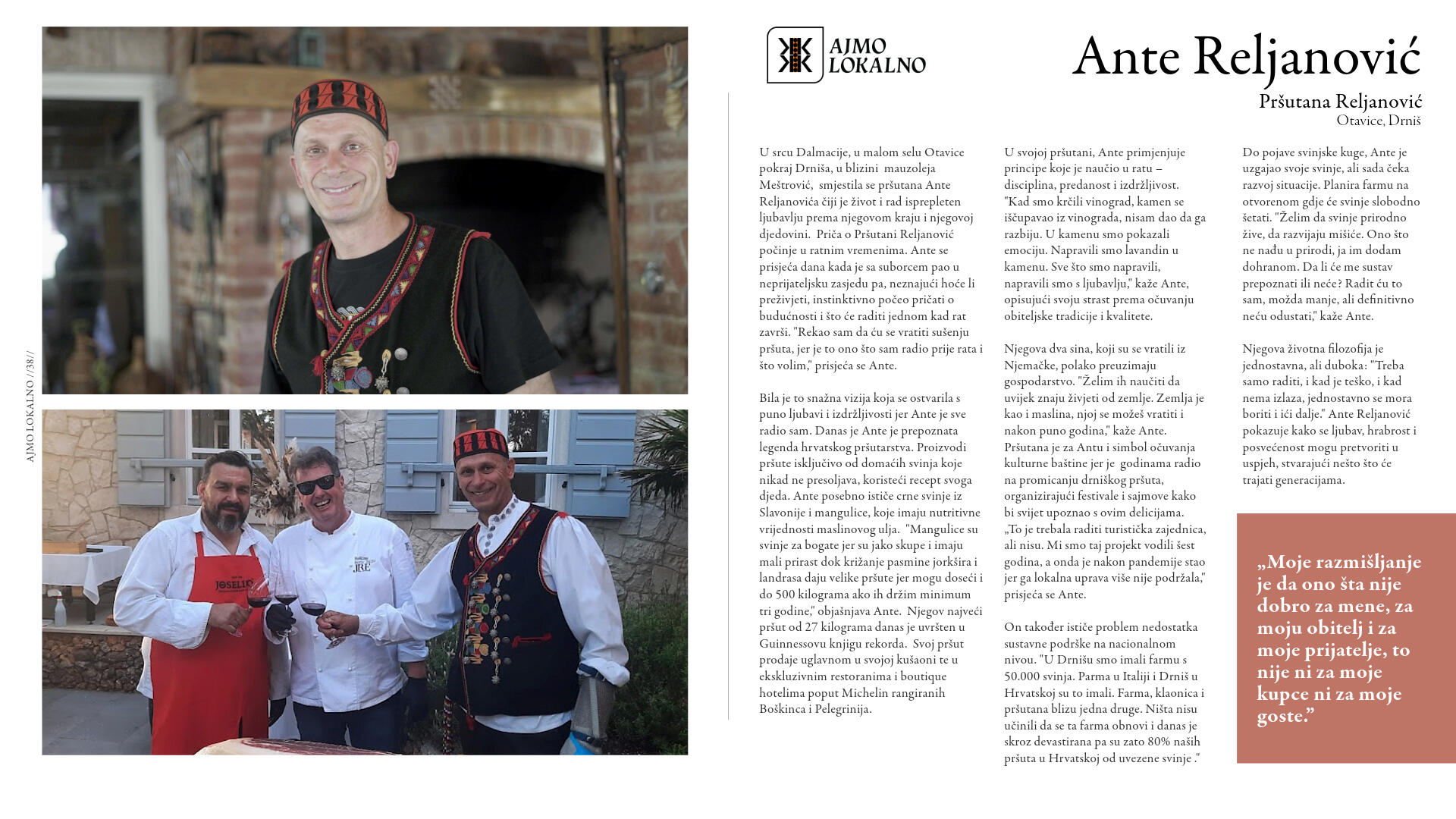 Danas, u svijetu brze hrane i industrijalizirane poljoprivrede, još uvijek postoje čuvari tradicije koji skrbe o proizvodnji zdrave, domaće hrane. To su naši susjedi, vrijedni ljudi čija imena možda ne znamo, ali čiji trud okusimo u svakom zalogaju i svakom gutljaju domaćih jela i pića. Njihov je posao nerijetko i njihov životni poziv: ribari čiji se dan rađa s izlaskom sunca, poljoprivrednici čiji žuljeviti dlanovi nose tragove mukotrpnog rada na poljima, ugostitelji čija jela pričaju priču o našoj baštini.