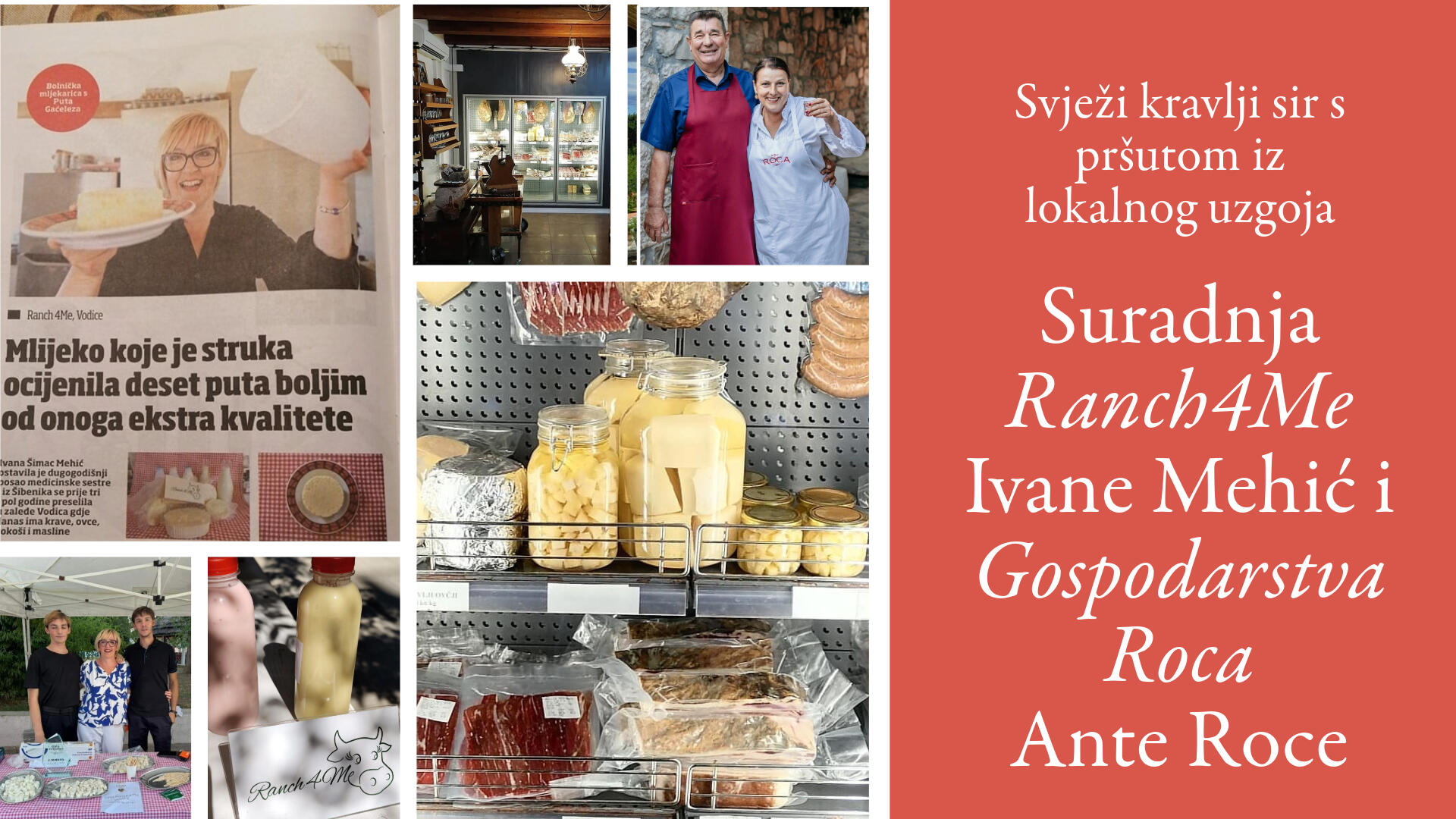 Ranch4Me koristi pršut Ante Roce kao sastojak u svojim sirnim proizvodima, stvarajući jedinstven gastronomski proizvod koji se zatim prodaje u prodavaonici Gospodarstva Roca. Ova suradnja predstavlja jedan od primjera kako kratki lanci opskrbe mogu funkcionirati gotovo intuitivno – bez složenih posrednika, oslanjajući se na povjerenje i kvalitetu lokalnih proizvoda. Platforma Reducos, putem Ajmo Lokalno mreže, nudi priliku za dodatno unapređenje ove suradnje. Digitalna platforma omogućit će Ivani Mehić lakši plasman njezinih proizvoda prema ugostiteljima i krajnjim kupcima, dok će Roca moći pratiti distribuciju kroz geolokacijske alate i optimizirati narudžbe po potrebi putem mobilne aplikacije.