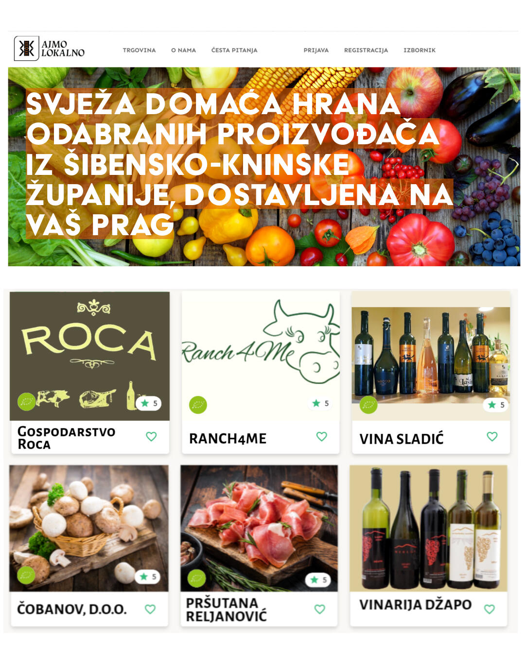 Kriteriji članstva u mreži Ajmo Lokalno:Lokalna proizvodnja i pozitivna reputacijaObavezno: Proizvodi moraju biti proizvedeni u Šibensko-kninskoj županiji, čime se osigurava lokalni karakter mreže i podržava lokalno gospodarstvo.Poželjno: Poticanje korištenja sjemenja autohtonih sorti i uzgoj autohtonih pasmina, regenerativnog poljodjelstva te tradicionalnih metoda proizvodnje lokalnih specijaliteta, što doprinosi očuvanju lokalne baštine i agrobioraznolikosti.Kvaliteta i sigurnost hrane:Obavezno: Proizvodi moraju zadovoljavati zakonske propise o sigurnosti hrane i higijenskim standardima, čime se štiti zdravlje potrošača. Redovite analize hrane i tla te ekotoksikološka ispitivanja proizvoda i zemljišnih tijela jamstvo su zdravstva.Poželjno: Poticanje proizvođača na certificiranje prema nacionalnim ili međunarodnim standardima kvalitete, što potvrđuje kvalitetu i može olakšati plasman proizvoda na tržište.Fleksibilno: Omogućiti manjim proizvođačima da postupno usvajaju standarde kvalitete, pružajući im podršku i edukaciju.